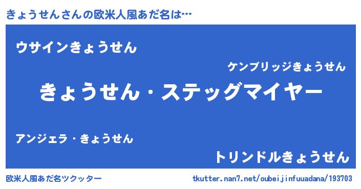 | ピコ太郎風あだ名 | 『キョ十郎』『ピキ三郎』『キコ二郎』 |
