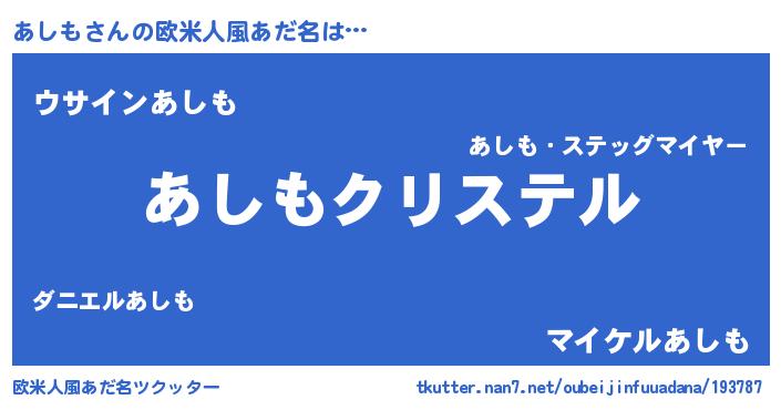 | 意味不明あだ名 | 『あしもフォーエバー』『ペロリンあしも』 |