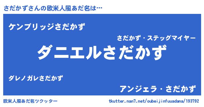 | 男性向けラノベタイトル風あだ名 | 『おまえをオタクにしてやるから、俺をさだかずにしてくれ! 』 |
