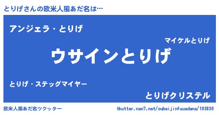 男性向けラノベタイトル風あだ名 | 『とりげの嫁は女の子じゃないと思った?』 |