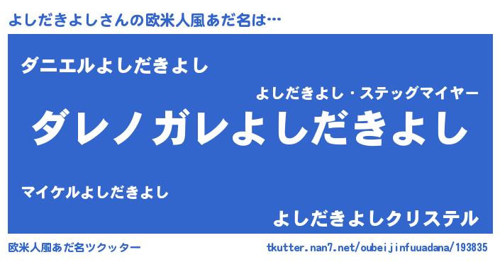 | 意味不明あだ名 | 『住所不定無職よしだきよし(1歳)』 |