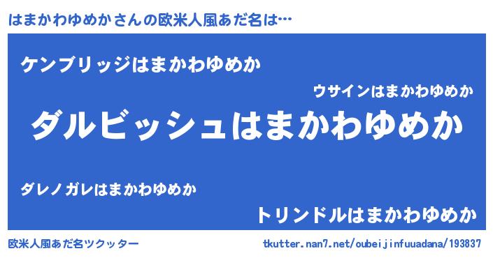 | 胡散臭い通販商品みたいなあだ名 | 『絶対に幸福をもたらす水素水…その名も「はまかわゆめか」』 |