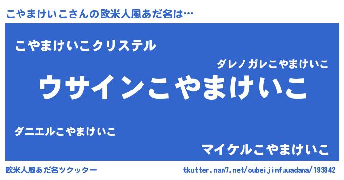 | 女子向けラノベタイトル風あだ名 | 『こやまけいこは平凡を望む』 |