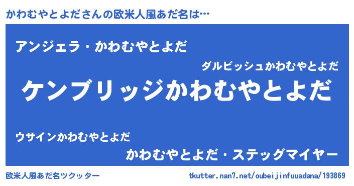 | ヘコむあだ名 | 『かわむやとよだ(小並感)』『かわを』 |
