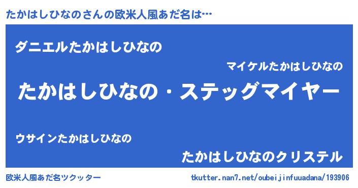 | 男性向けラノベタイトル風あだ名 | 『うちのたかはしひなのが世界を掌握している!』 |