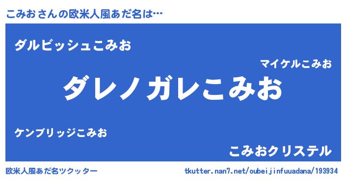 | 男性向けラノベタイトル風あだ名 | 『魔弾の王とこみお』『こみおの憂鬱』 |