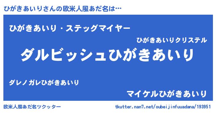 | ヘコむあだ名 | 『ひがきあいり(遠い目)』『ひがにゅー』 |