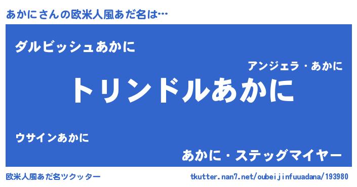 | ヘコむあだ名 | 『あかに(遠い目)』『あかっちょ』 |