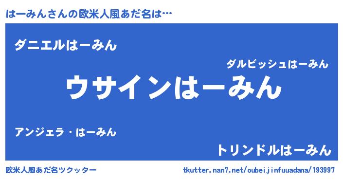 | 男性向けラノベタイトル風あだ名 | 『はーみんの嫁は女の子じゃないと思った?』 |