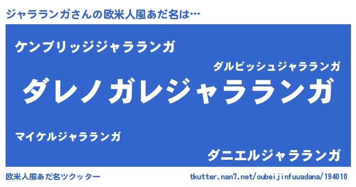 | ヘコむあだ名 | 『ジャラランガ(震え声)』『ジャっふぃ~』 |