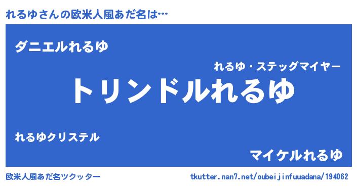 | 男性向けラノベタイトル風あだ名 | 『れるゆ~年齢イコール彼女いない歴の魔法使い~』 |