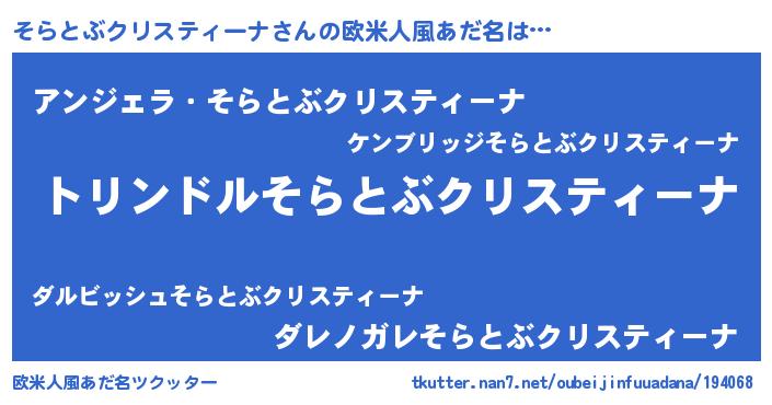 | 意味不明あだ名 | 『しいたけ科そらとぶクリスティーナ属』 |