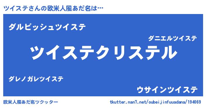 | ヘコむあだ名 | 『豆乳』『ツイステ(笑)』『ツイっぺ』 |