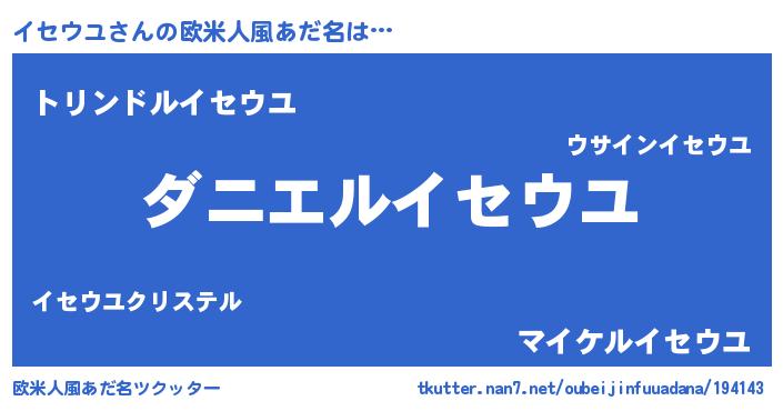 | 女子向けラノベタイトル風あだ名 | 『死神イセウユの再婚』 |