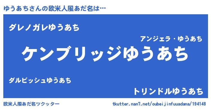 | 男性向けラノベタイトル風あだ名 | 『Re:ゆうあちから始める異世界生活』 |