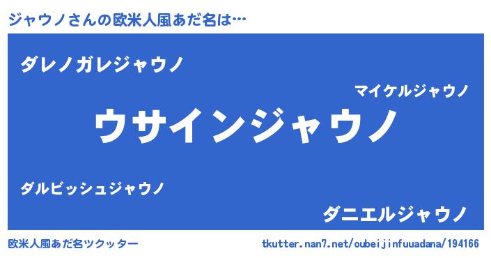 | 男性向けラノベタイトル風あだ名 | 『ダンジョンにジャウノを求めるのは間違っているだろうか』 |