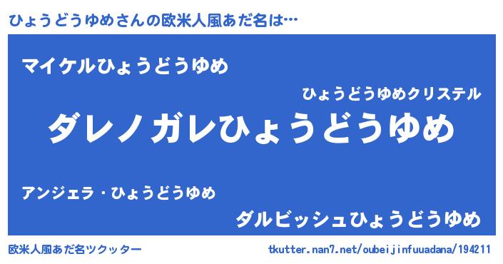 | 意味不明あだ名 | 『住所不定無職ひょうどうゆめ(13歳)』 |