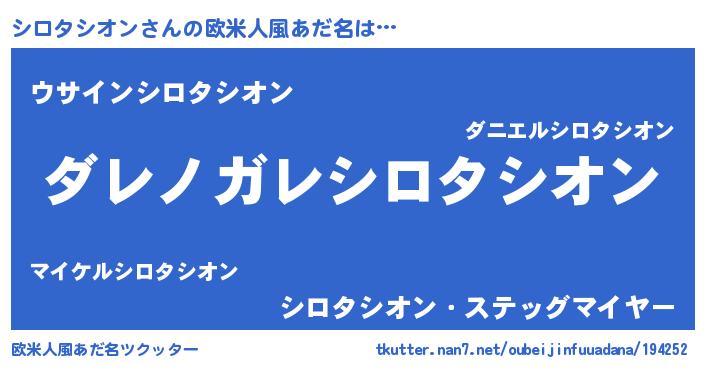 | 意味不明あだ名 | 『住所不定無職シロタシオン(11歳)』 |