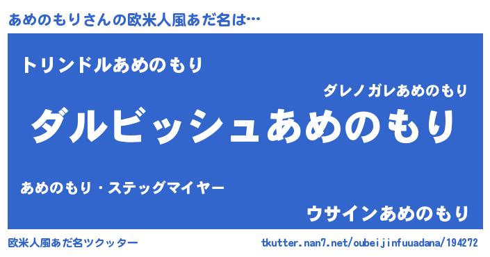 | ヘコむあだ名 | 『あめのもり(小並感)』『あめっ子』 |