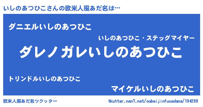 | 意味不明あだ名 | 『住所不定無職いしのあつひこ(47歳)』 |
