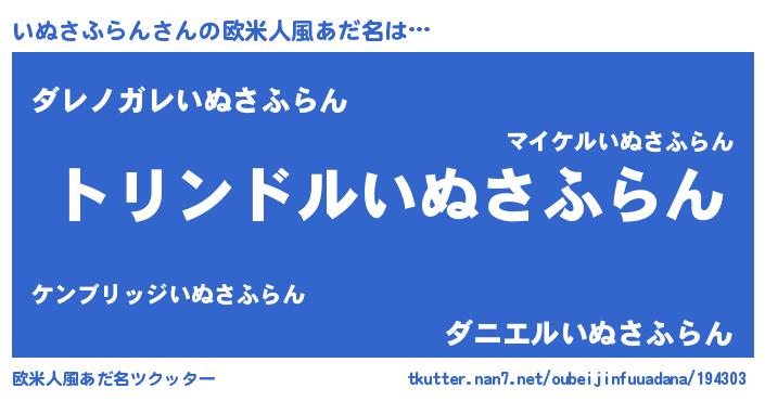 | 料理風あだ名 | 『いぬさふらんごはん』 |