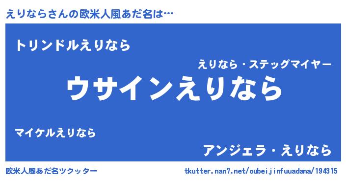 | 意味不明あだ名 | 『とにかく怪しいえりなら』 |