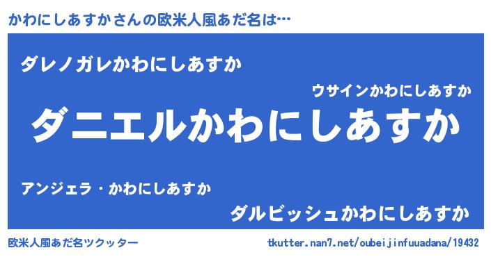 | 女子向けラノベタイトル風あだ名 | 『かわにしあすか恋絵巻』 |