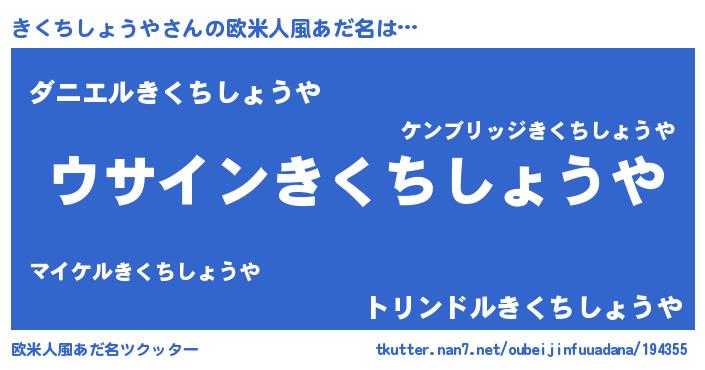 | 男性向けラノベタイトル風あだ名 | 『きくちしょうやの嫁は女の子じゃないと思った?』 |