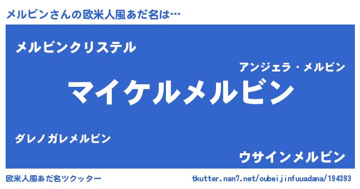 | ファンタジー風あだ名 | 『メルフェル』『エターナルメルビンー』 |