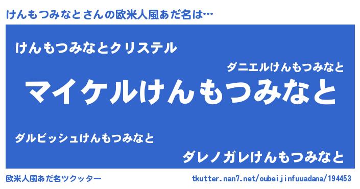 | 男性向けラノベタイトル風あだ名 | 『けんもつみなとの憂鬱』 |