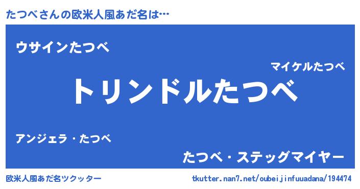 男性向けラノベタイトル風あだ名 | 『転生したらたつべだった件』 |