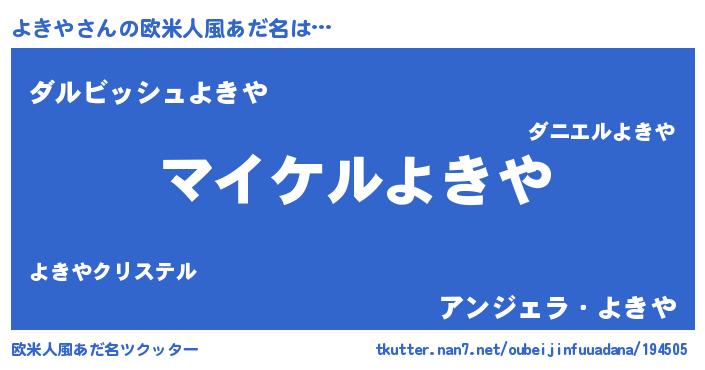 | 男性向けラノベタイトル風あだ名 | 『よきやの憂鬱』 |