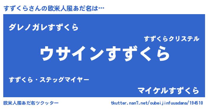 | 男性向けラノベタイトル風あだ名 | 『ダンジョンにすずくらを求めるのは間違っているだろうか』 |