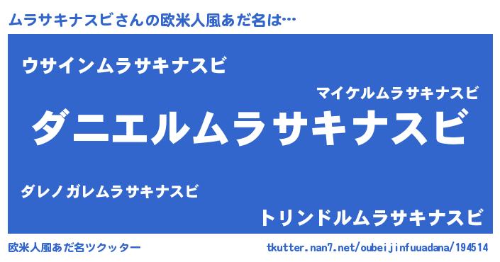 | ポケモン風あだ名 | 『ムックウザ』『ヒムラサキナスビ』 |