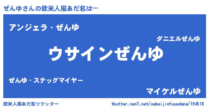 | 男性向けラノベタイトル風あだ名 | 『ぜんゆの嫁は女の子じゃないと思った?』 |