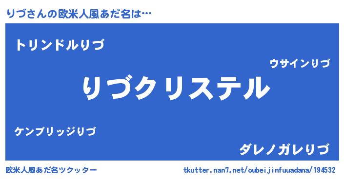| 女子向けラノベタイトル風あだ名 | 『りづの雑貨屋さん』『りづ様がみてる』 |