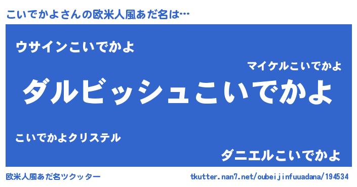 | 男性向けラノベタイトル風あだ名 | 『こいでかよという概念が存在しない退屈な世界 』 |