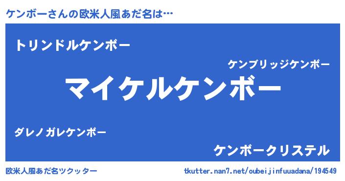 | 男性向けラノベタイトル風あだ名 | 『ケンボーの憂鬱』 |