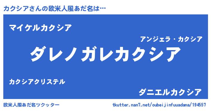 | 意味不明あだ名 | 『住所不定無職カクシア(79歳)』 |