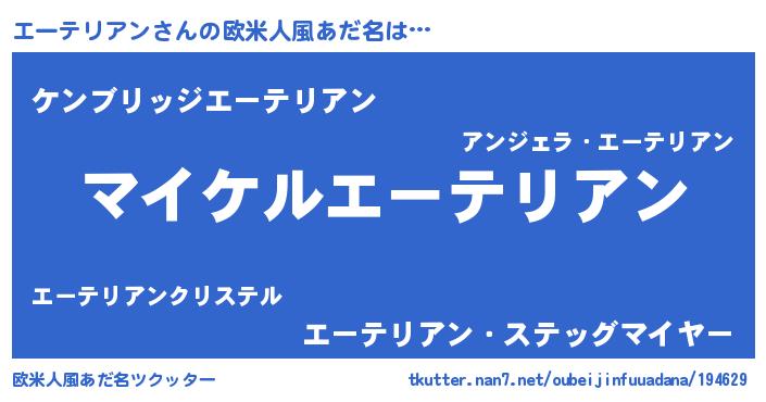 | 男性向けラノベタイトル風あだ名 | 『エーテリアンの憂鬱』 |