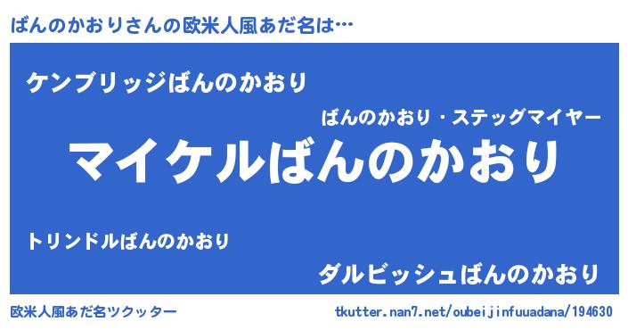 | 男性向けラノベタイトル風あだ名 | 『ばんのかおりの憂鬱』 |
