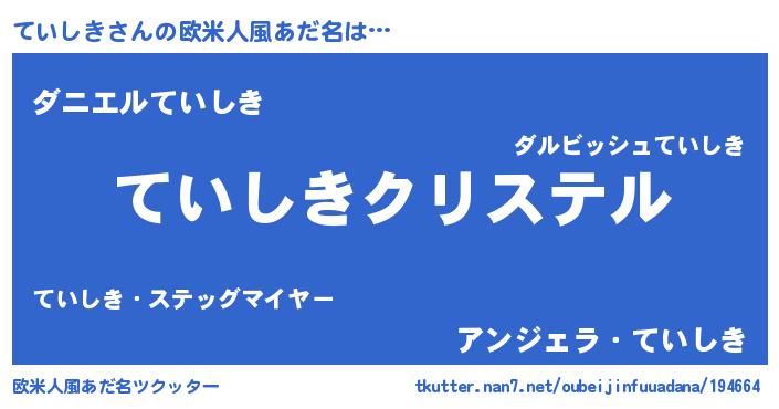 | 女子向けラノベタイトル風あだ名 | 『ていしきの雑貨屋さん』 |