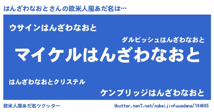 | 男性向けラノベタイトル風あだ名 | 『ハンザワナオトアートオンライン』 |