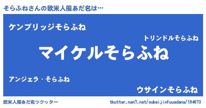 | 男性向けラノベタイトル風あだ名 | 『ソラフネアートオンライン』 |