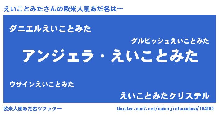 | 男性向けラノベタイトル風あだ名 | 『えいことみたに滅ぼされるだけの簡単なお仕事です』 |