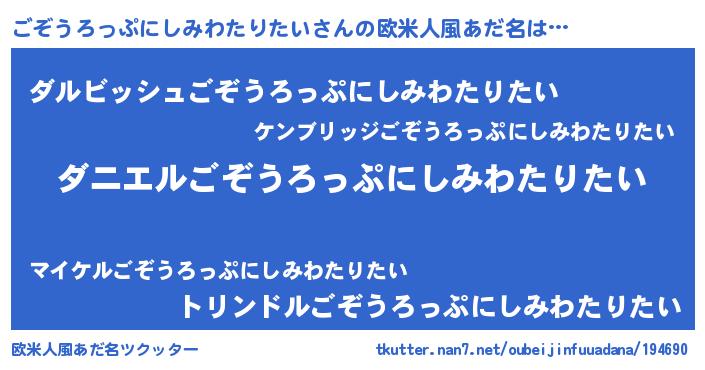 | ヘコむあだ名 | 『ごぞうろっぷにしみわたりたい(苦笑)』 |