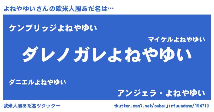 | 意味不明あだ名 | 『住所不定無職よねやゆい(43歳)』 |