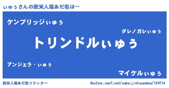 | 男性向けラノベタイトル風あだ名 | 『転生したらぃゅぅだった件』 |