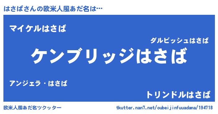 | 男性向けラノベタイトル風あだ名 | 『Re:はさばから始める異世界生活』 |