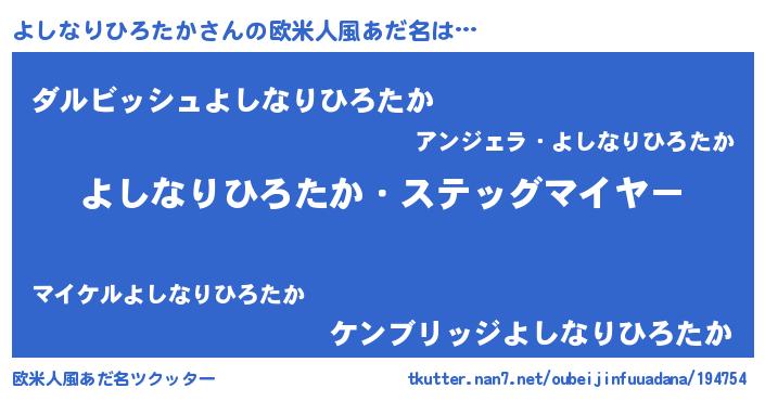 | 男性向けラノベタイトル風あだ名 | 『うちのよしなりひろたかが世界を掌握している!』 |
